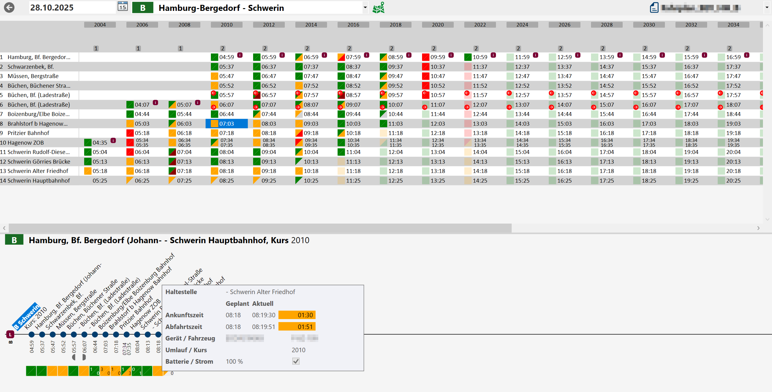Exakte Ankunfts- / Abfahrtszeiten direkt auf der Perlschnur der Fahrt