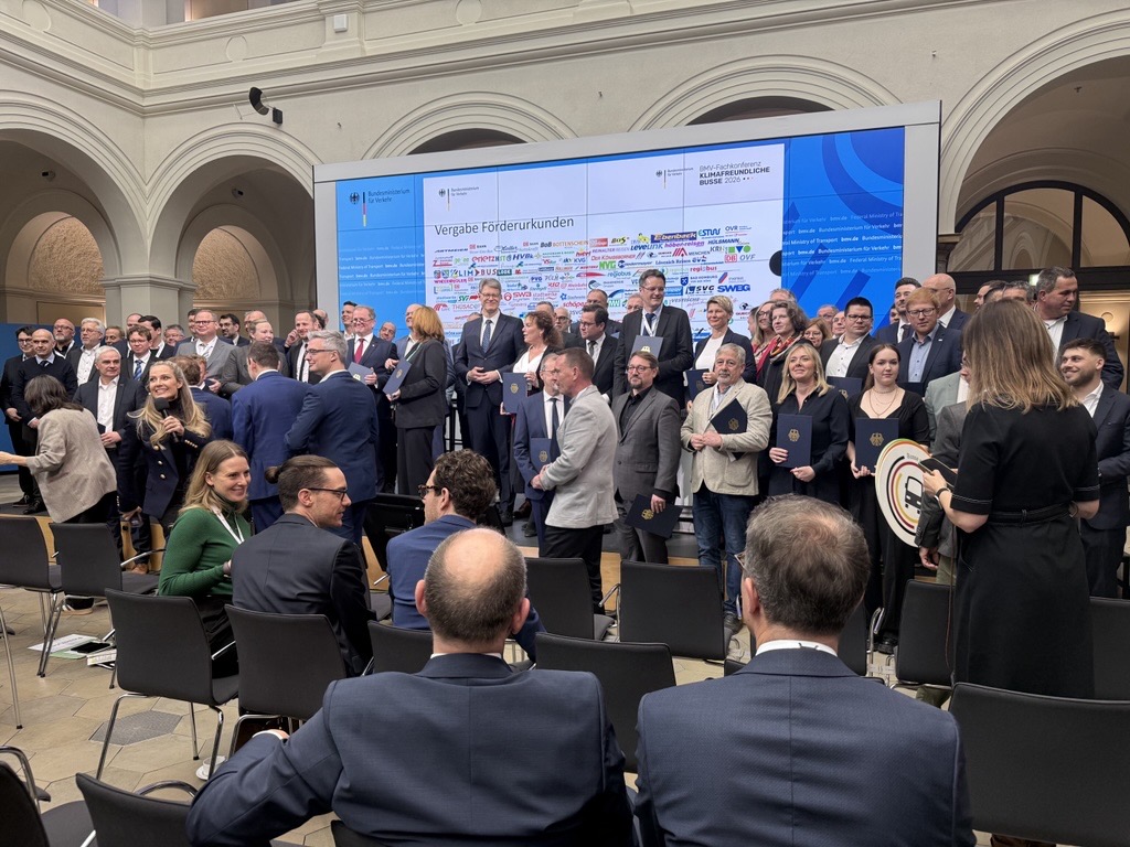 Parallel zur Konferenz hat das Bundesministerium für Verkehr auf der BUSKON 2026 Förderurkunden übergeben. Laut BMV erhalten im aktuellen Förderaufruf 151 Unternehmen insgesamt 417 Millionen Euro. Gefördert wird die Beschaffung von 1.887 neuen Elektrobussen.