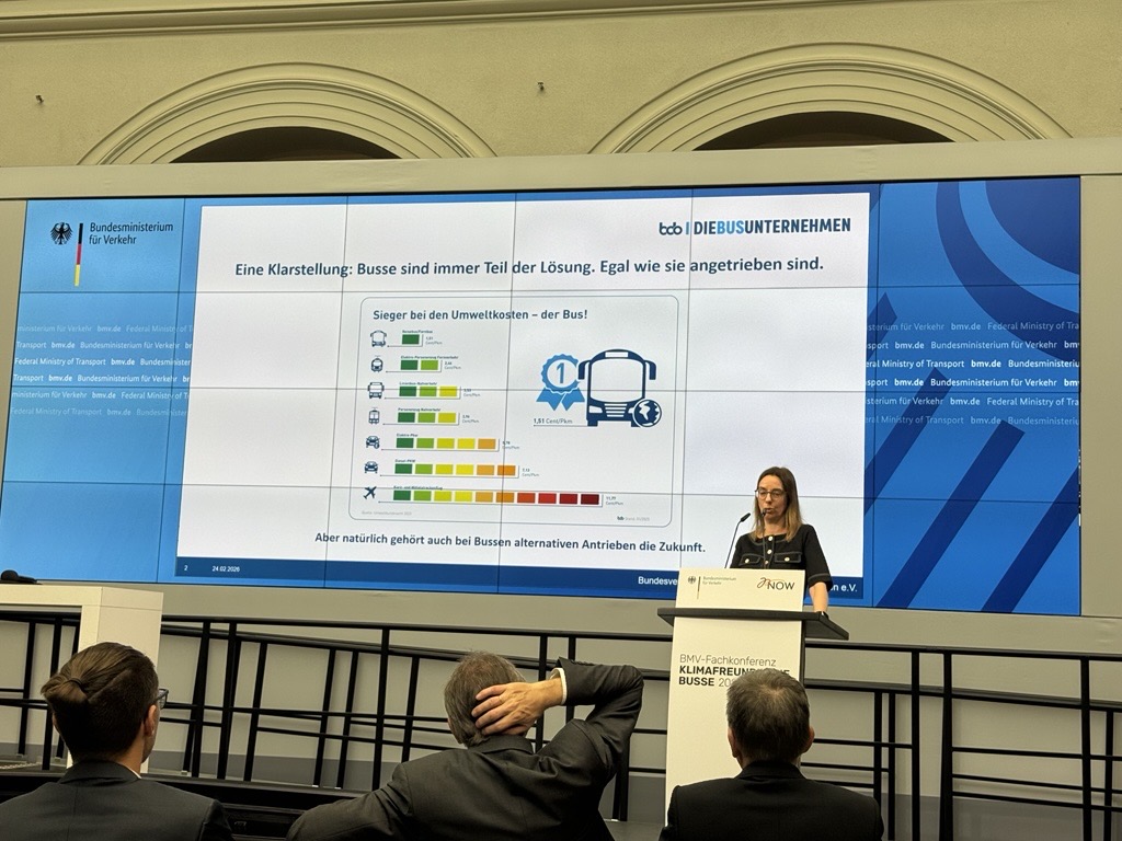 Die BMV Fachkonferenz klimafreundliche Busse 2026 hat am 24. Februar in Berlin stattgefunden, organisiert von der NOW GmbH, mit Teilnahme vor Ort und online. Auf der Veranstaltungsseite waren außerdem Exkursionen für den 25. Februar genannt, darunter ein Besuch eines BVG Betriebsgeländes.