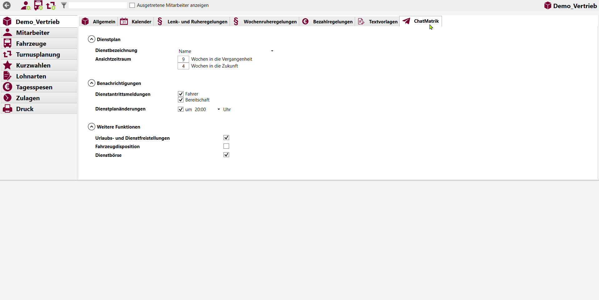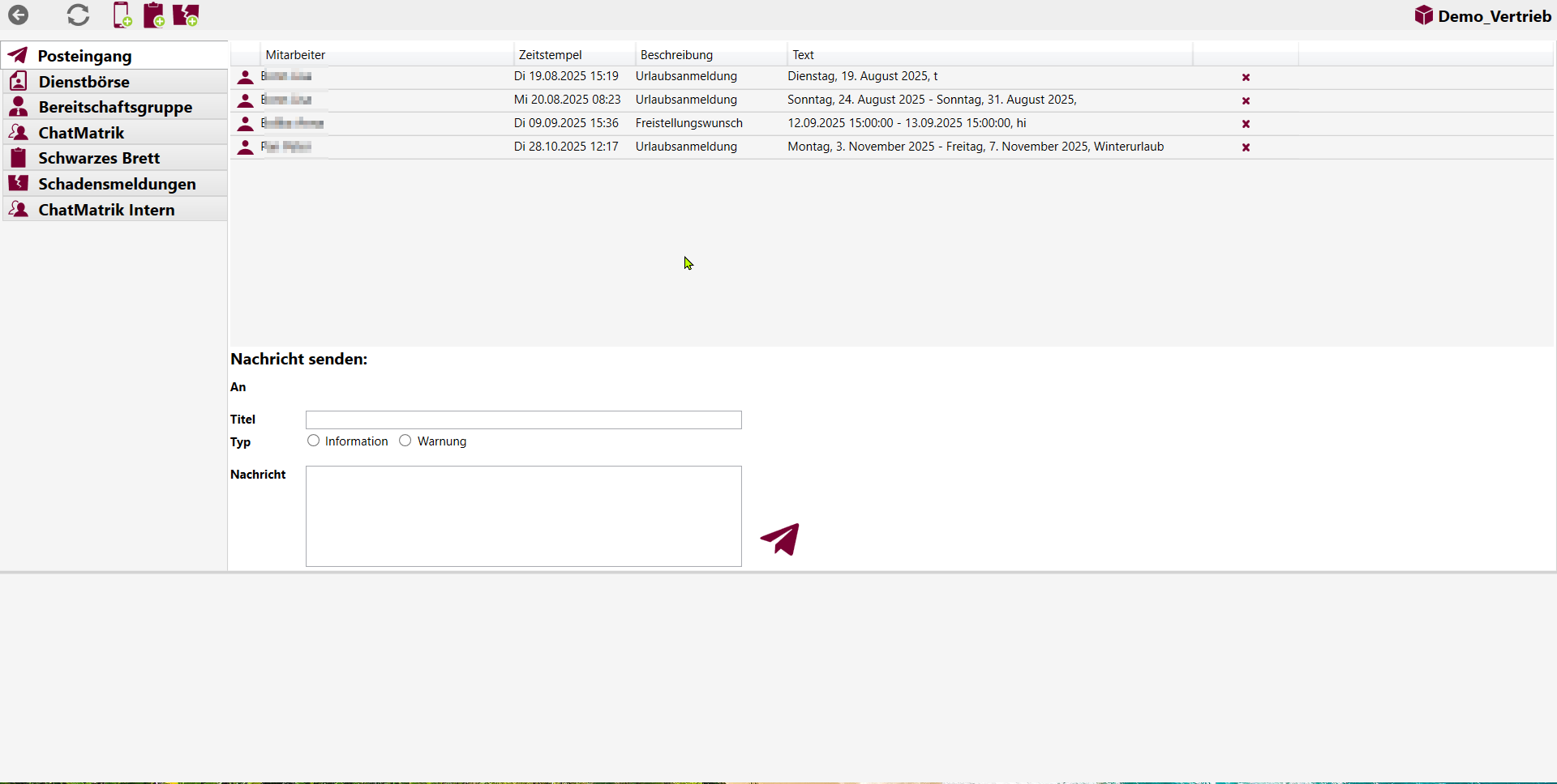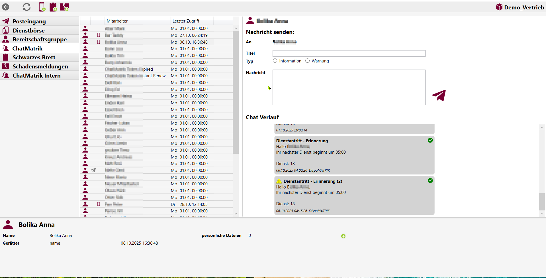 Nachrichten in Sekunden aufs Handy des Fahrpersonal. Über die Dienstbörse können offene Dienste veröffentlicht werden, und das Fahrpersonal kann dort Arbeitswünsche anmelden.