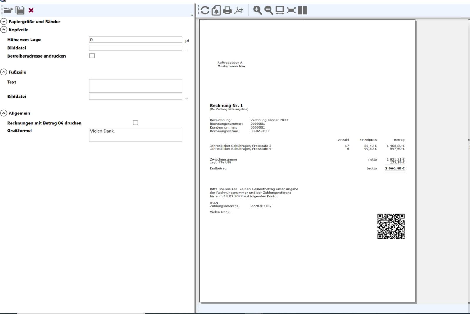 Gedruckte Abos können in unterschiedlichen Varianten abgerechnet werden: per Rechnung, SEPA-Einzug oder als Sammelrechnung an den Auftraggeber oder die Schule. Für jedes gedruckte Ticket wird eine Forderung im System erzeugt, die schnell und einfach abgerechnet werden kann. Insbesondere die Bearbeitung der Sammelabrechnungen von Schülertickets ist in kürzester Zeit erledigt: Nach der Eingabe von Abrechnungsdatum und Zahlungsziel wird per Knopfdruck die Rechnung erzeugt.