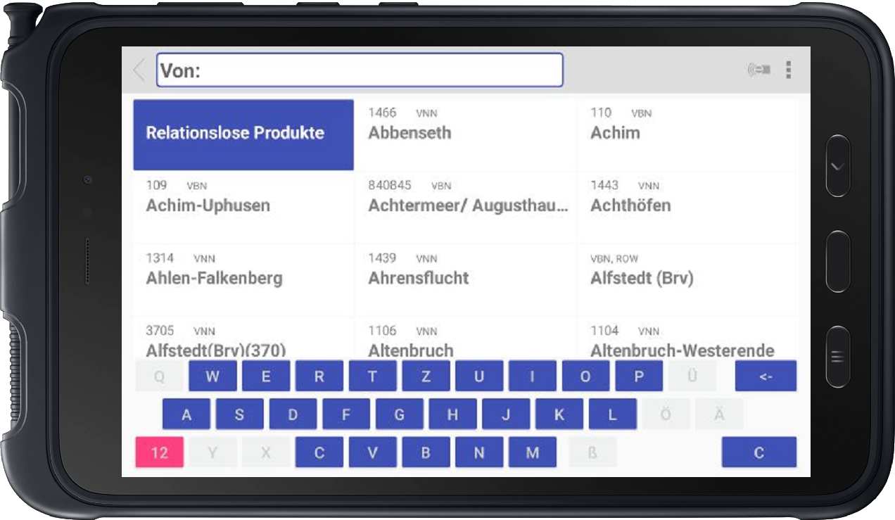 Quelle über Standort und einfache Zielauswahl in der Tablet TicketAPP