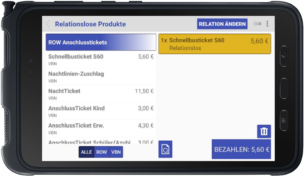 Verkauf direkt auf dem Android Tablet, der Druck erfolgt über einen robusten Thermodrucker mit staufreiem Schneidesystem und Bordrechnerfunktion. Nach der Anmeldung nutzt dein Fahrpersonal die Ticket App.